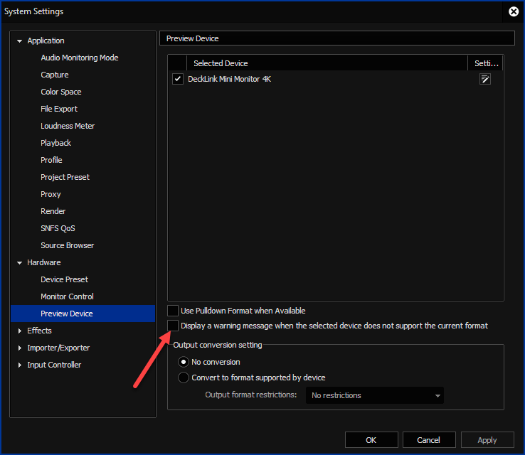 The same settings apply to EDIUS 11 Pro or Workgroup