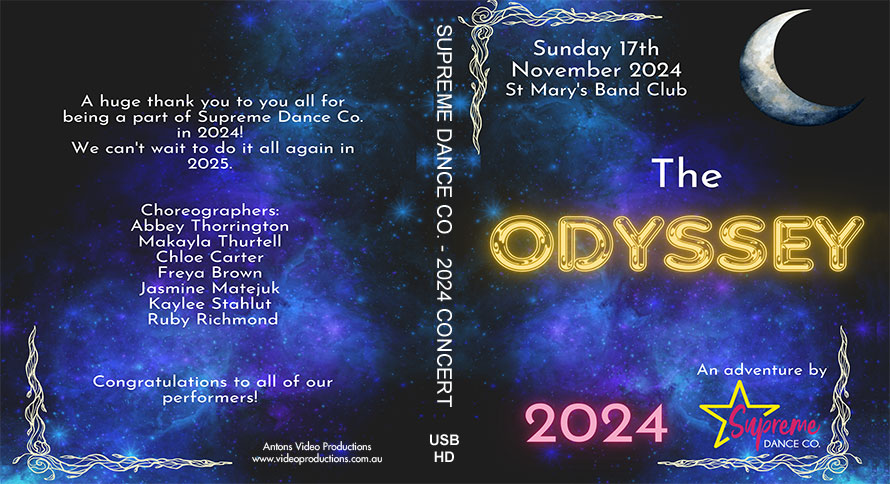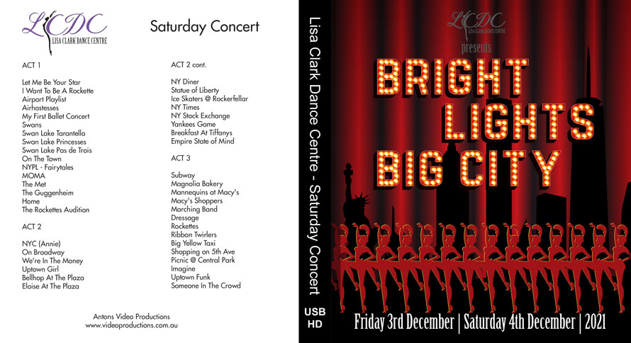 We cater for video productions of dance concerts or school concerts as well as that special live musical performance by a solo artist or a band fully edited in HD and packaged in USB Library Cases with printed colour labels as seen in examples below.